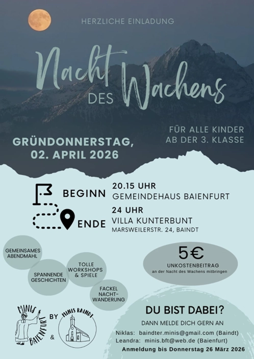 Im Rahmen des Zukunftskonzepts „Pastorale Zukunft in Baindt“ wurde beraten, wie bei künftig möglicherweise weniger Gottesdiensten neue geistliche Angebote gestaltet werden können. Denkbar sind beispielsweise Gottesdienste mit besonderer musikalischer Prägung oder alternative Formate in größeren zeitlichen Abständen. Ziel ist es, frühzeitig tragfähige Strukturen zu entwickeln.